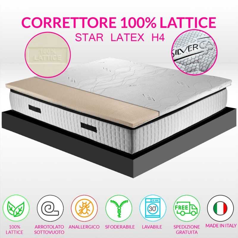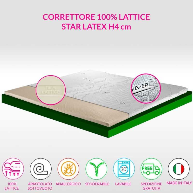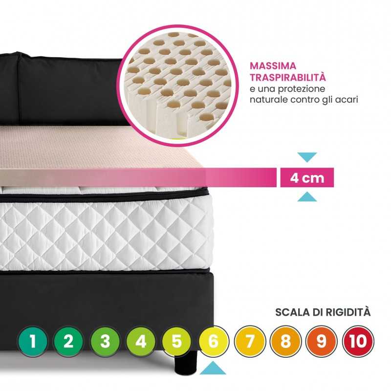 Corrector for 4 cm high mattress with antimicrobial and electrostatic fabric. Topper in 100% latex Ecological and healthy, elastic and anti-mite by nature.