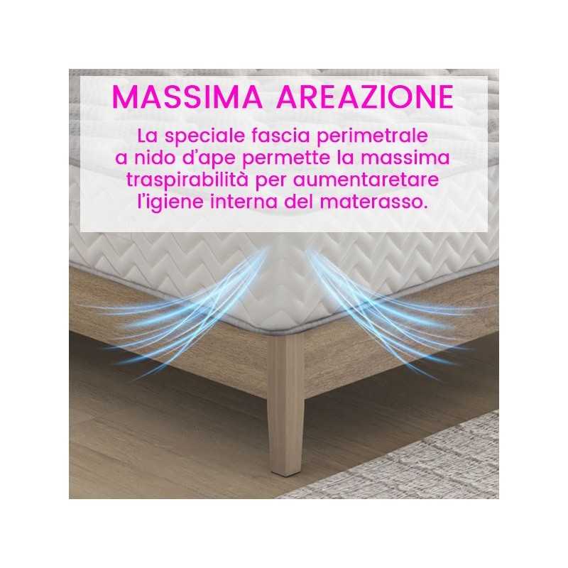 Rigid medium mattress That welcomes the weight of the body, deforming and aligning the spine and then always return to the original size even after thousands of compressions.