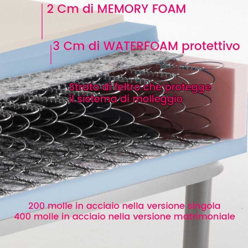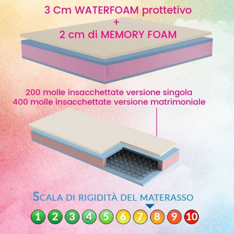 The Spring mattress It is protected by a Waterfoam polyurethane box, a thick "rubber" thick 3 cm per side that protects the springing system which, in turn, is contained and protected by a rigid felt layer.