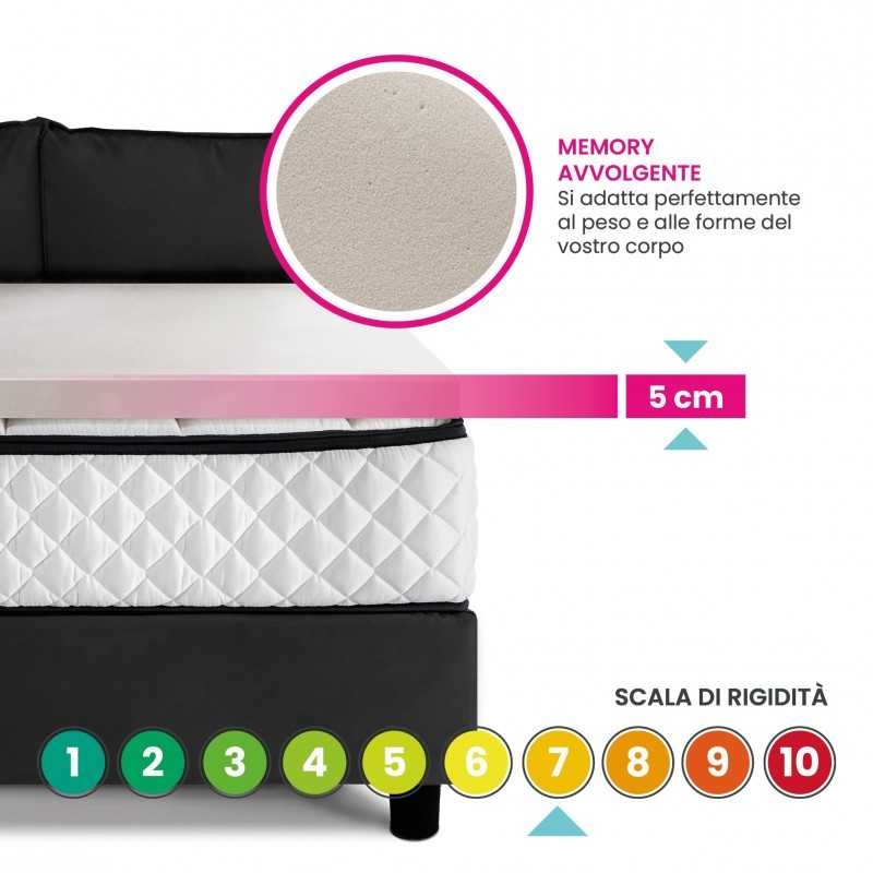 If your mattress is still in good condition but it is inconvenient, too hard or not ergonomic, a Topper Memory Foam 5 cm It can represent a practical and effective solution. It is particularly appreciated by those looking for more comfortable support for daily rest and who wants to improve the feeling of reception of the bed quickly and easily.