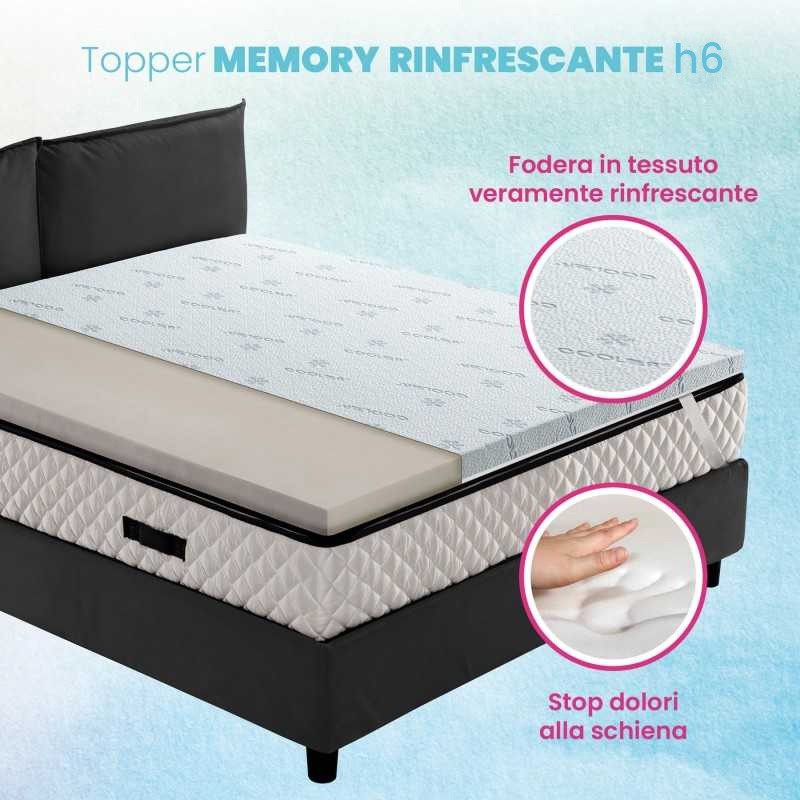 The secret of Topper Memory High 6 cm It is the Cooler fabric, an innovative material that regulates the body temperature during rest, offering one Immediate feeling of freshness.