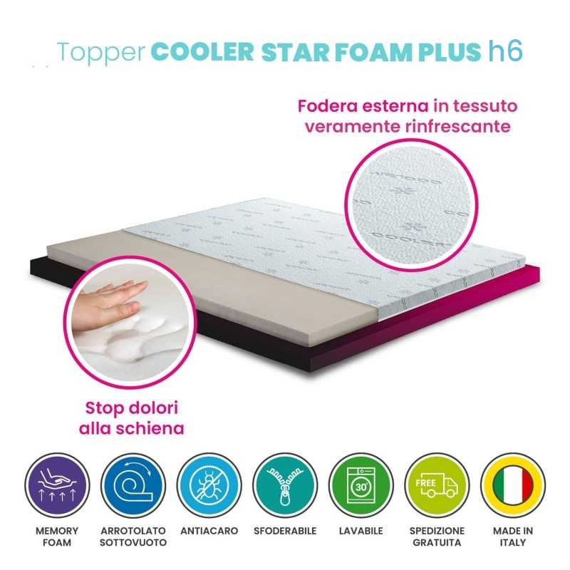 The 6 cm high memory topper with cooler fabric It is the ideal choice for those seeking A comfortable, fresh and personalized rest. Thanks to the thermoregulating technology and the quality of Italian materials, it transforms any mattress into a welcoming and perfectly balanced bed.