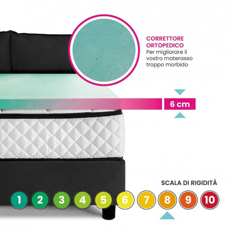The material is non-deformable, high density. Laboratory tests have shown that the Orthopedic topper It is extremely robust but capable of maintaining its degree of elasticity while preserving its high performance over time.