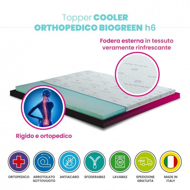 To improve your mattress too soft. Corrector for 6 cm high mattress with innovative Cooler refreshing fabric. Topper in biegreen, material obtained from renewable, natural and non-contaminant raw materials.