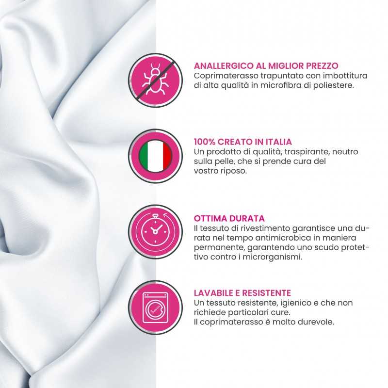 Experienced hands fabric, like all our products for sale online, even the Fabric that covers the topper is created in Italy. Padded micro polyester fiber is completely hypoallergenic and anti-mite.