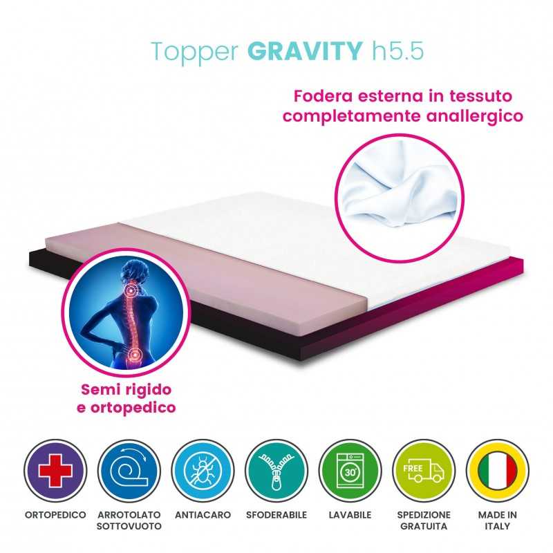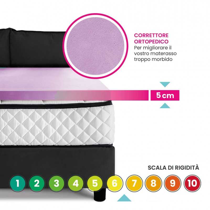 Made in Italy orthopedic topper Indeformable ergonomic that, in addition to guaranteeing a suitable body support, fits slightly to the shape to be hosted, distributing the weight of the body uniformly favoring the decontraction and postural relaxation. Stop at back pain then.