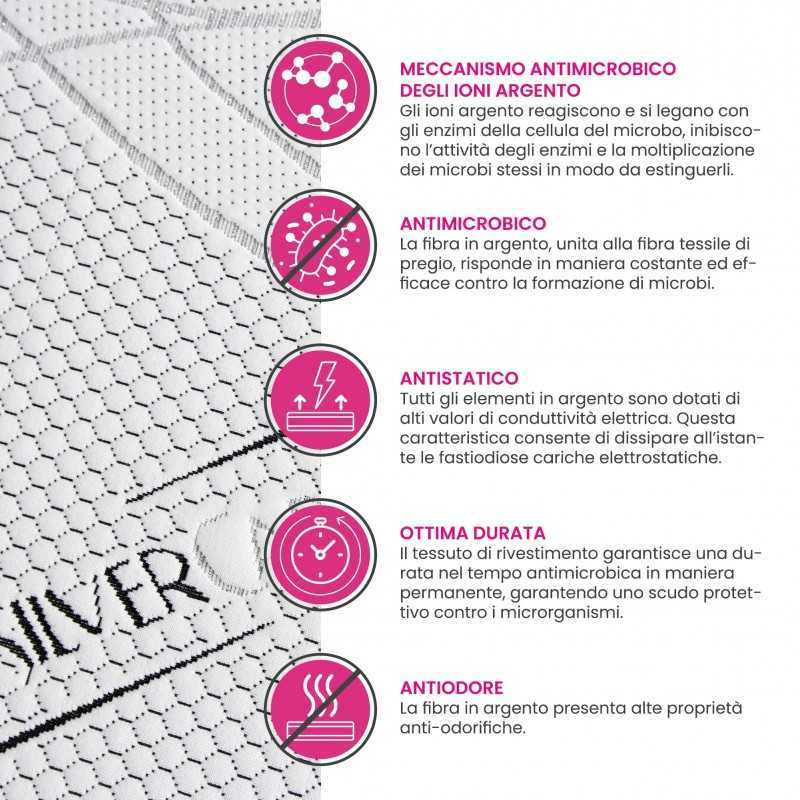 Silver fabric is the most used for mattresses with medical device as, the main feature is to kill micro bodies and make, thanks the silver thread, the electrostatic topper. In modern bedrooms where mobile, tablet, televisions etc ... I am on the agenda, a fabric capable of draining electrostatic waves is the best ever.