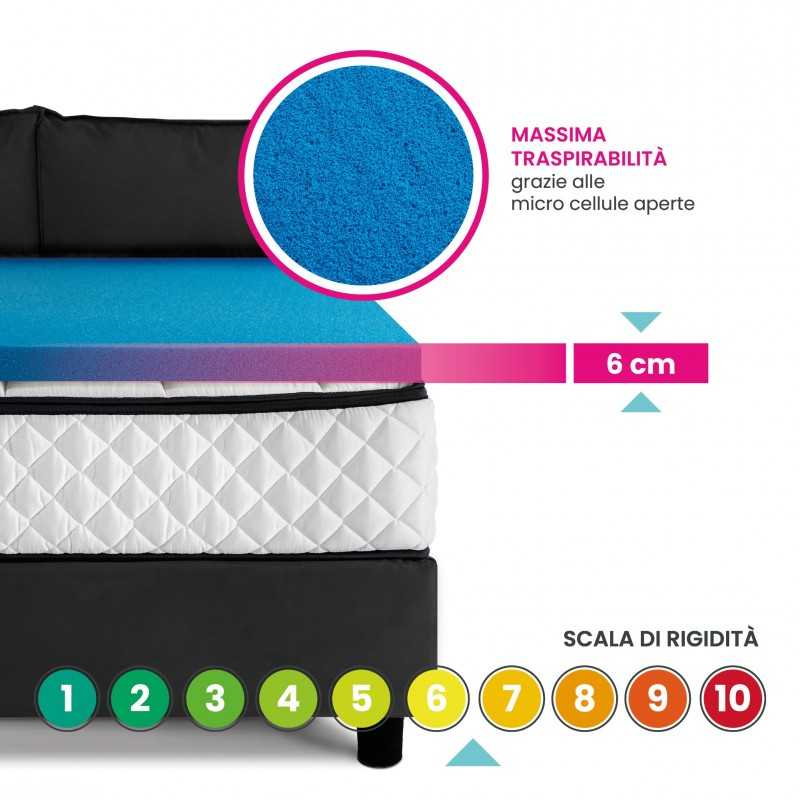 STOP AL CALDO estivo con il topper termoregolatore che migliora il comfort del vostro materasso. Alto 6.5 cm, tessuto antimicrobico ed elettrostatico. Topper in fresco Polargel per mantenere costante la temperatura del corpo ed eliminare i dolori alla schiena